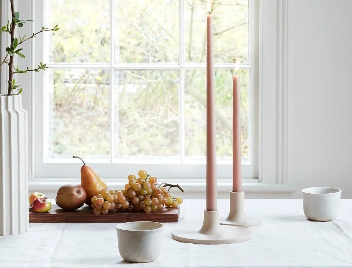 A simple candleholder, from $36, with beeswax tapers, $24. (We have these around our house and I love the vibe so much.)
