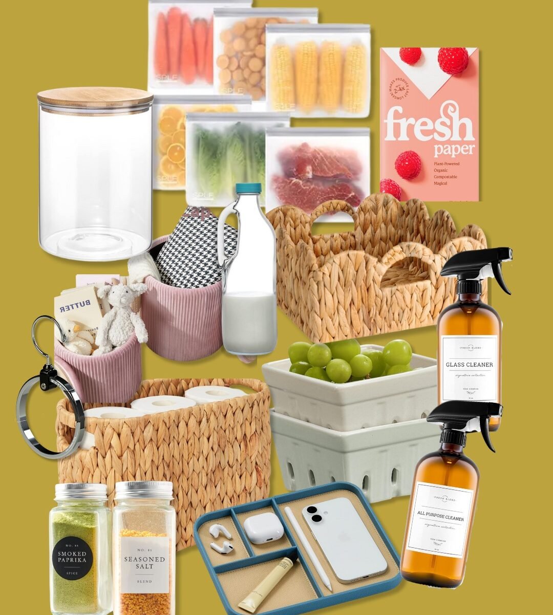 Kitchen: Upgrade shelves, cabinets, and the fridge with organizers that create visual order and make everyday items easier to reach. Thoughtful details, from spice storage to subtle deodorizing, help the space feel cleaner and more pulled together.