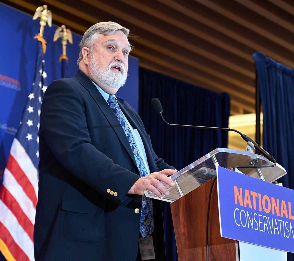 The Rev. Albert Mohler speaks during the National Conservatism Conference, Sept. 4, 2025, in Washington. (RNS photo/Jack Jenkins)