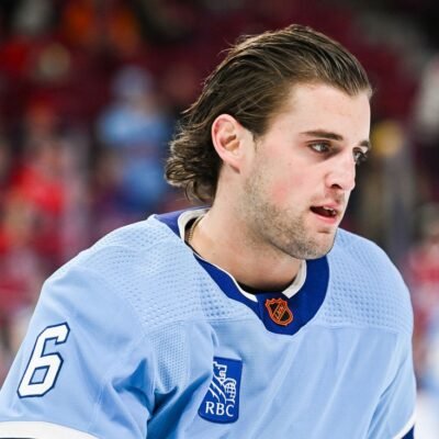 Jan 26, 2023; Montreal, Quebec, CAN; Montreal Canadiens defenseman Chris Wideman (6) during warm-up before the game against the Detroit Red Wings at Bell Centre.