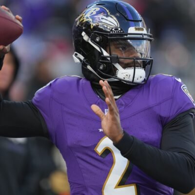 Jan 20, 2024; Baltimore, MD, USA; Baltimore Ravens quarterback Tyler Huntley (2) warms up before a 2024 AFC divisional round game against the Houston Texans