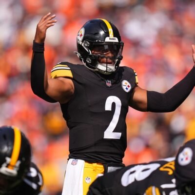 Sep 15, 2024; Denver, Colorado, USA; Pittsburgh Steelers quarterback Justin Fields (2) during the first quarter against the Denver Broncos at Empower Field at Mile