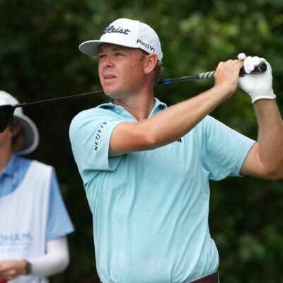 Aug 10, 2024; Greensboro, North Carolina, USA; Patton Kizzire hits his tee shot from two during the second round of the Wyndham Championship golf tournament