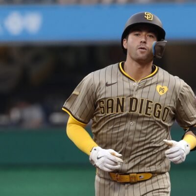 Aug 7, 2024; Pittsburgh, Pennsylvania, USA; against San Diego Padres catcher Kyle Higashioka (20) circles the bases on a three run home run against the
