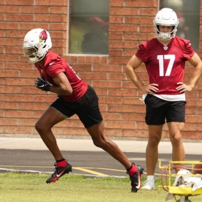 Arizona Cardinals wide receiver Zay Jones (12) during organized team activities in Tempe on May 20, 2024. The NFL suspended Arizona Cardinals wide receiver Zay