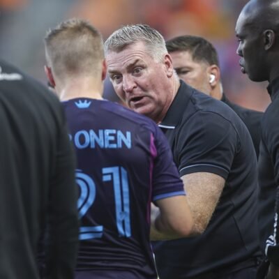 Jun 29, 2024; Houston, Texas, USA; Charlotte FC head coach Dean Smith reacts on the sideline during the match against Houston Dynamo FC at Shell