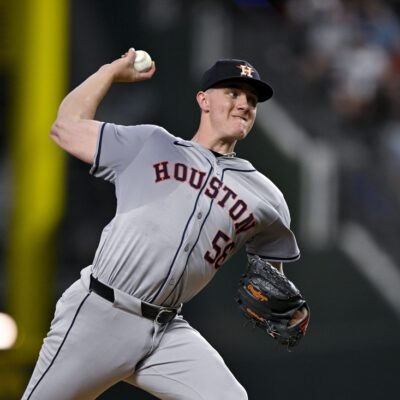 Aug 5, 2024; Arlington, Texas, USA; Houston Astros starting pitcher Hunter Brown (58) pitches against the Texas Rangers during the third inning at Globe Life