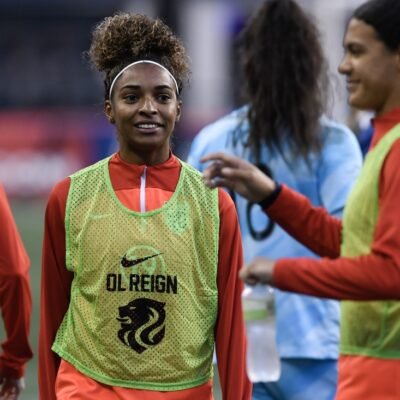 May 3, 2023; Seattle, Washington, USA; Reign midfielder Luany (19) looks on during halftime of the match against Angel City FC at Lumen Field. Mandatory