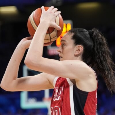 Aug 4, 2024; Villeneuve-d’Ascq, France; United States power forward Breanna Stewart (10) shoots against Germany in the first half in a women’s group C game