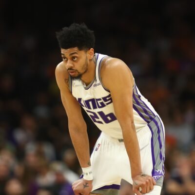 Apr 10, 2022; Phoenix, Arizona, USA; Sacramento Kings guard Jeremy Lamb (26) against the Phoenix Suns at Footprint Center. Mandatory Credit: Mark J. Rebilas-USA TODAY