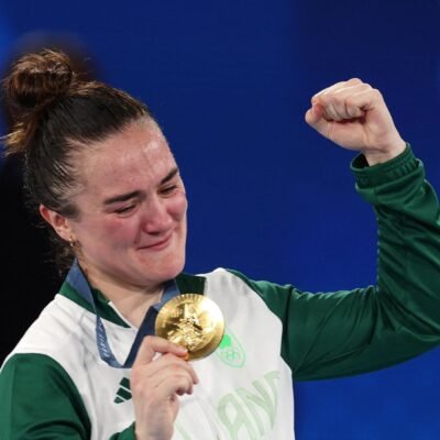 Paris 2024 Olympics – Boxing – Women’s 60kg – Victory Ceremony – Roland-Garros Stadium, Paris, France – August 06, 2024. Gold medallist Kellie Harrington of