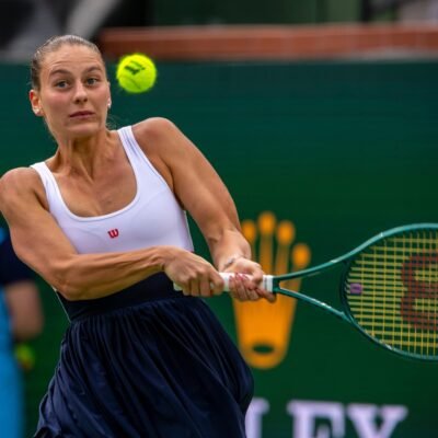 Marta Kostyuk hits to Iga Swiatek during the WTA semifinals of the BNP Paribas Open in Indian Wells, Calif., Friday, March 15, 2024. No. 11