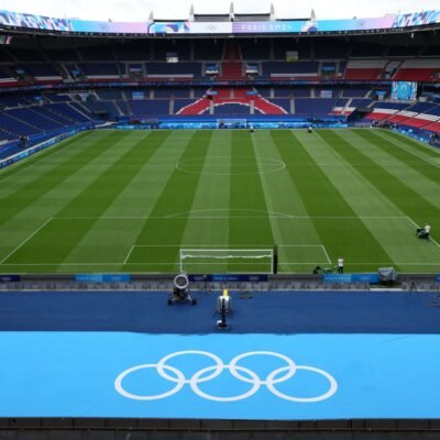 Jul 23, 2024, Paris, France; A general overall view of the Olympic rings logo at Parc des Princes. The stadium is the home of Paris