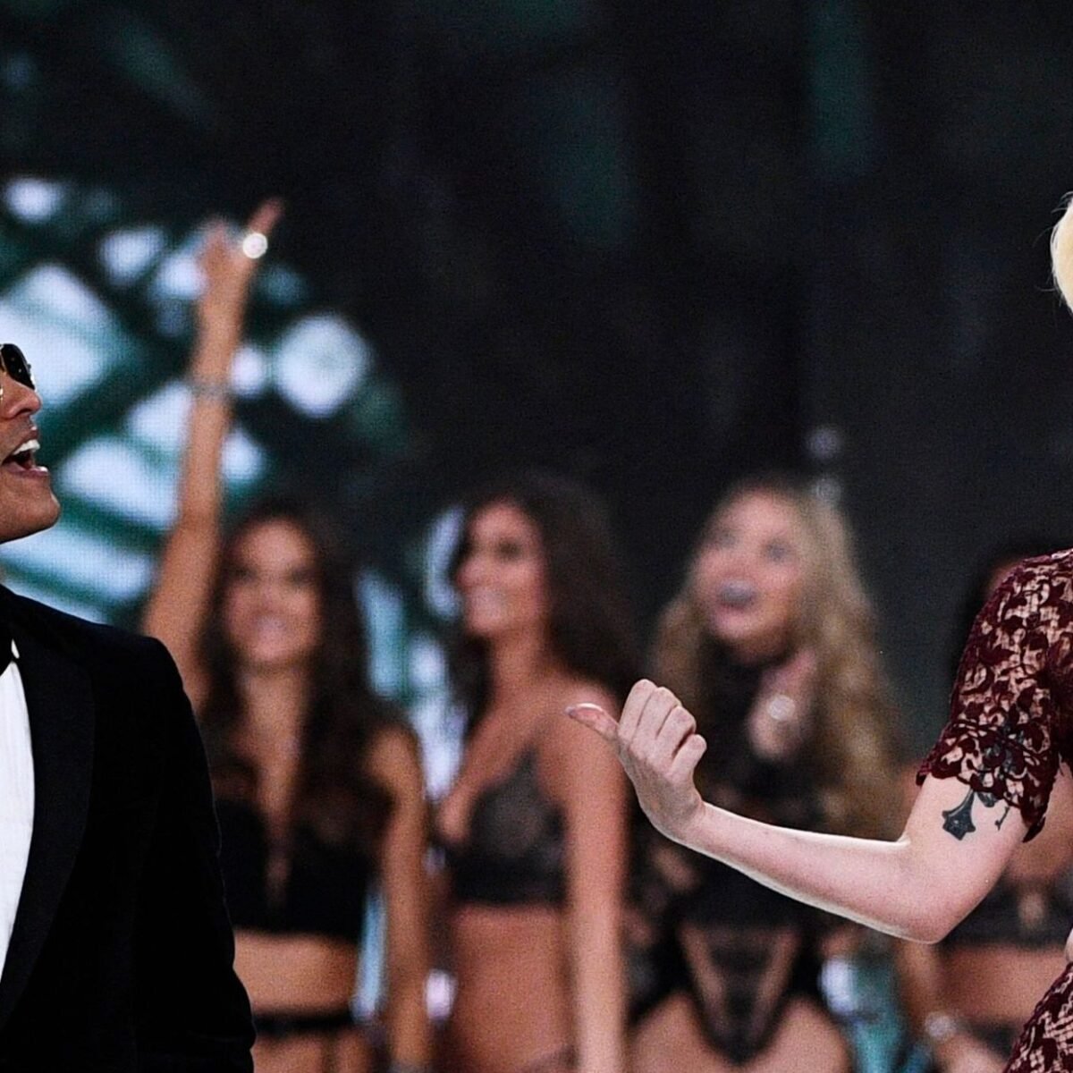 Lady Gaga and Bruno Mars during the 2016 Victoria's Secret Fashion Show
