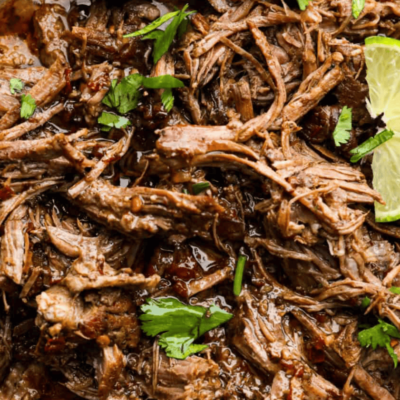 This website may contain affiliate links and advertising so that we can provide recipes to you. Read my disclosure policy. Slow cooker barbacoa beef simmers