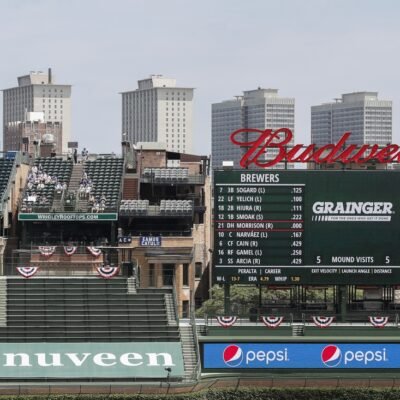 Jul 26, 2020; Chicago, Illinois, USA; Fans watch from Wrigley Rooftops MLB game between the Chicago Cubs and Milwaukee Brewers during the second inning at
