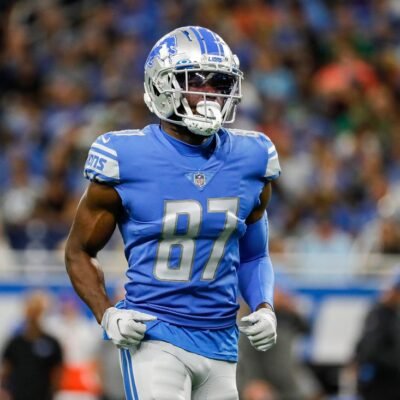 Sep 11, 2022; Detroit, Michigan, USA; Detroit Lions wide receiver Quintez Cephus (87) get in position for a kickoff against Philadelphia Eagles during the first