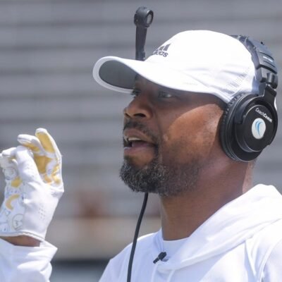 Alabama State assistant coach Jacoby Jones during ASU s Black and Gold Spring Game at Hornet Stadium in Montgomery, Ala., on Saturday April 15, 2023.