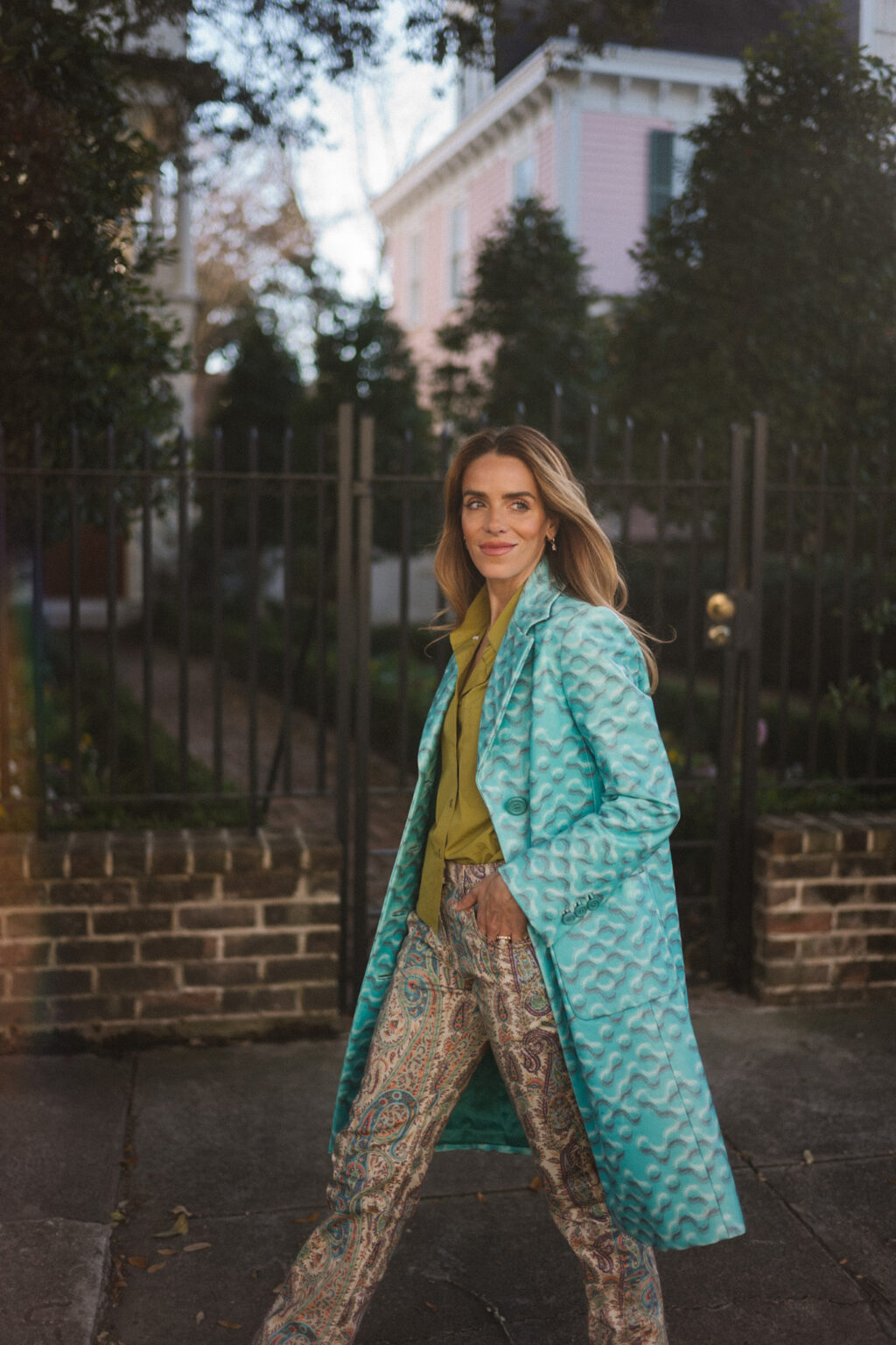 Tailoring, but with personality. These standout layers soften classic silhouettes with color and print, making structured dressing feel modern and wearable. A statement coat adds instant polish, a colored poplin shirt brings freshness to winter layers, and printed trousers replace basic bottoms with something more expressive. Together, they create an easy formula for getting dressed that works for the office, dinner plans, and weekend coffee runs or quick errands. Finish the look with a lightweight polo tied at the waist or draped over the shoulders for added dimension, then add a playful accessory such as metallic flats, a bold bag, or a patterned scarf to keep things feeling unexpected.