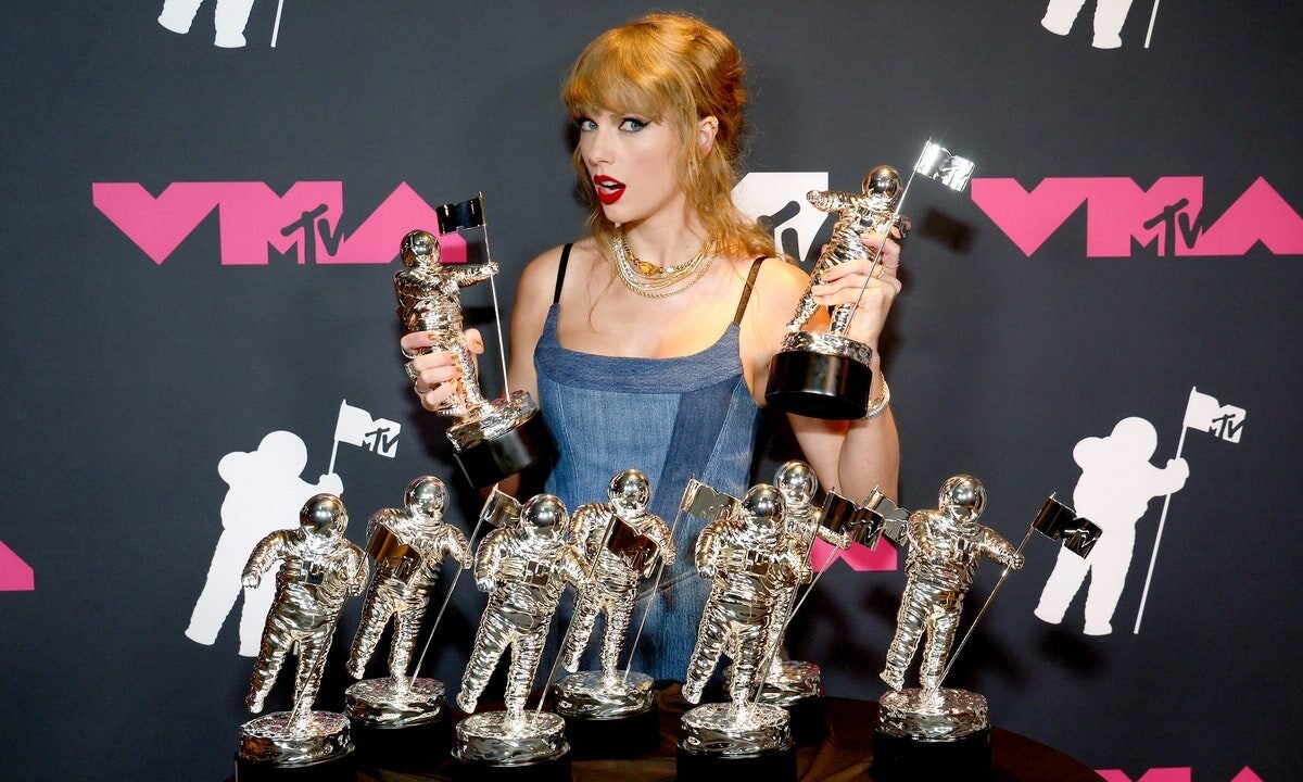 Taylor Swift was the big winner at the 2023 MTV Video Music Awards. She was the most-nominated artist entering the night, and she converted seven of her eight nominations into victories. Her biggest win was for Video of the Year for “Anti-Hero.”
