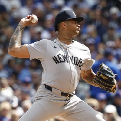 Sep 6, 2024; Chicago, Illinois, USA; New York Yankees starting pitcher Luis Gil (81) delivers a pitch against the Chicago Cubs during the first inning