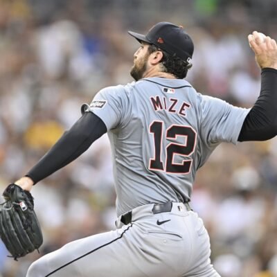 Sep 5, 2024; San Diego, California, USA; Detroit Tigers starting pitcher Casey Mize (12) pitches during the third inning against the Detroit Tigers at Petco