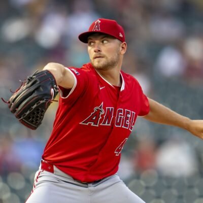 Sep 9, 2024; Minneapolis, Minnesota, USA; Los Angeles Angels starting pitcher Reid Detmers (48) delivers a pitch against the Minnesota Twins in the first inning