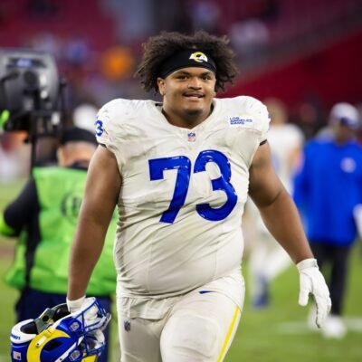 Nov 26, 2023; Glendale, Arizona, USA; Los Angeles Rams guard Steve Avila (73) against the Arizona Cardinals at State Farm Stadium. Mandatory Credit: Mark J.