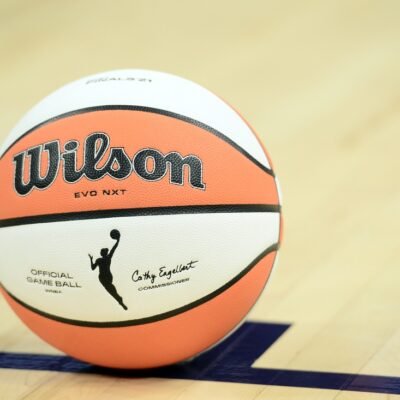 Oct 10, 2021; Phoenix, Arizona, USA; A view of the offical game ball during the second half of game one of the 2021 WNBA Finals