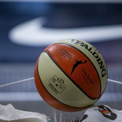 Oct 2, 2020; Bradenton, Florida, USA; A game ball waits on a sanitation cart during game 1 of the WNBA finals between the Las Vegas