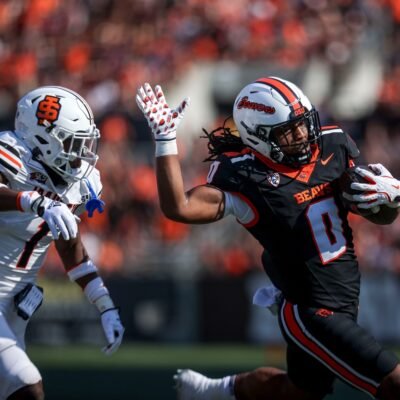 Oregon State Beavers running back Anthony Hankerson (0) runs the ball to score a touchdown in the first half of the game against Idaho State