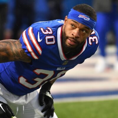 Dec 17, 2023; Orchard Park, New York, USA; Buffalo Bills cornerback Dane Jackson (30) warms up before a game against the Dallas Cowboys at Highmark