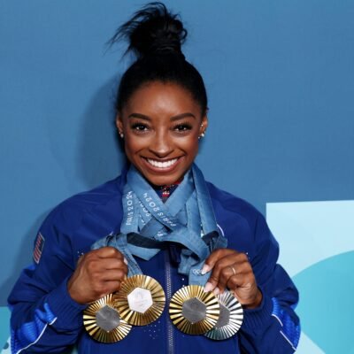 Image Credit: Getty Images Simone Biles is proudly showcasing her gold medals from the 2024 Paris Olympics, further solidifying her status as the most decorated