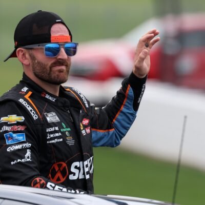 Jul 21, 2024; Indianapolis, Indiana, USA; NASCAR Cup Series driver Austin Dillon (3) waves to the crowd before the Brickyard 400 at Indianapolis Motor Speedway.