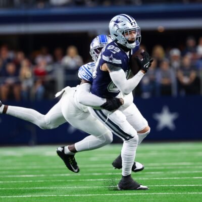 Dec 30, 2023; Arlington, Texas, USA; Dallas Cowboys tight end Peyton Hendershot (89) catches a pass as Detroit Lions safety Kerby Joseph (31) defends during