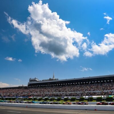 Jul 14, 2024; Long Pond, Pennsylvania, USA; NASCAR Cup Series driver Ty Gibbs (54) leads the field to the green flag to start The Great