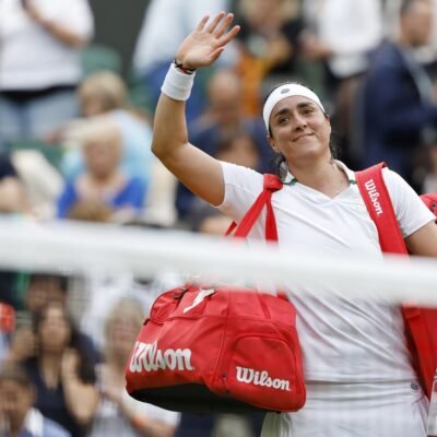 Jul 6, 2024; London, United Kingdom; Ons Jabeur (TUN) waves to the crowd while leaving the court after her match against Elina Svitolina (UKR)(not pictured)