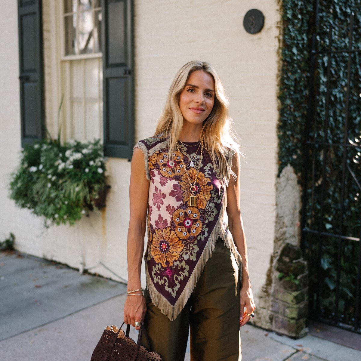 La DoubleJ Top (more sizes here, dress version here, cape version here), Chan Luu Pants, Prada Mules, Alaia Bag, Sherman Field & Arielle Ratner Necklaces