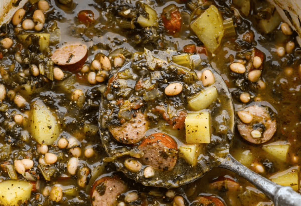 - Add Beans and Seasonings, and Simmer: Lower the heat to medium-low and stir in the turnip greens, Navy beans, tomatoes, and diced chiles, and Cajun seasoning. Season with salt and pepper to taste. Simmer swamp soup for 25-30 minutes before serving.