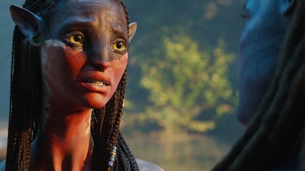 It feels as if we’re a zillion light years from the excitement of the first film. The idea of that one was that the human race had made such a mess of the planet Earth that they decided to exploit the mineral resources of an Edenic, unspoilt moon named Pandora. This plan wasn’t popular with Pandora’s blue-skinned humanoid inhabitants, the Na’vi, but a human Marine, Jake Sully (Sam Worthington) had his mind zapped into the body of a Na’vi-human hybrid, so that he could cosy up to the locals. He then fell in love with a Na’vi princess, Neytiri (Zoe Saldaña), and fought alongside her tribespeople against the invaders from Earth. In short, Avatar was Pocahontas meets the Smurfs in space – a scenario ripe with conflicts and environmental issues.