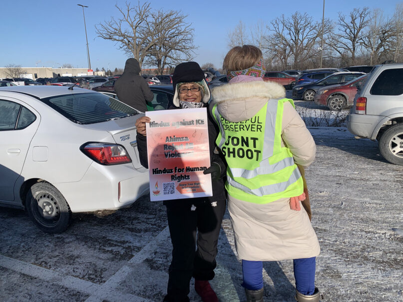 Author Sunita Viswanath, left, and a fellow demonstrator in Minneapolis. (Photo courtesy of Hindus for Human Rights)