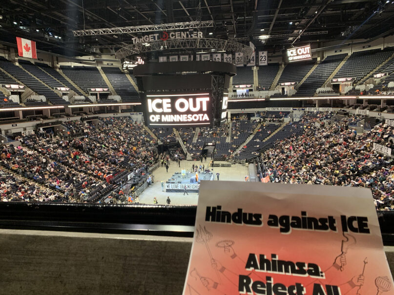 Thousands of people attend a rally at the Target Center after a large march on Friday, Jan. 23, 2026, in Minneapolis. (Photo courtesy of Hindus for Human Rights)