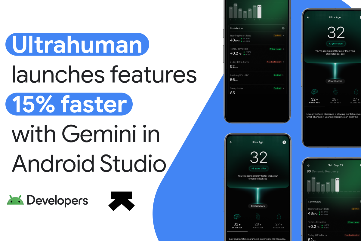Ultrahuman is a consumer health-tech startup that provides daily well-being insights to users based on biometric data from the company’s wearables, like the RING Air and the M1 Live Continuous Glucose Monitor (CGM). The Ultrahuman team leaned on Gemini in Android Studio’s contextually aware tools to streamline and accelerate their development process.